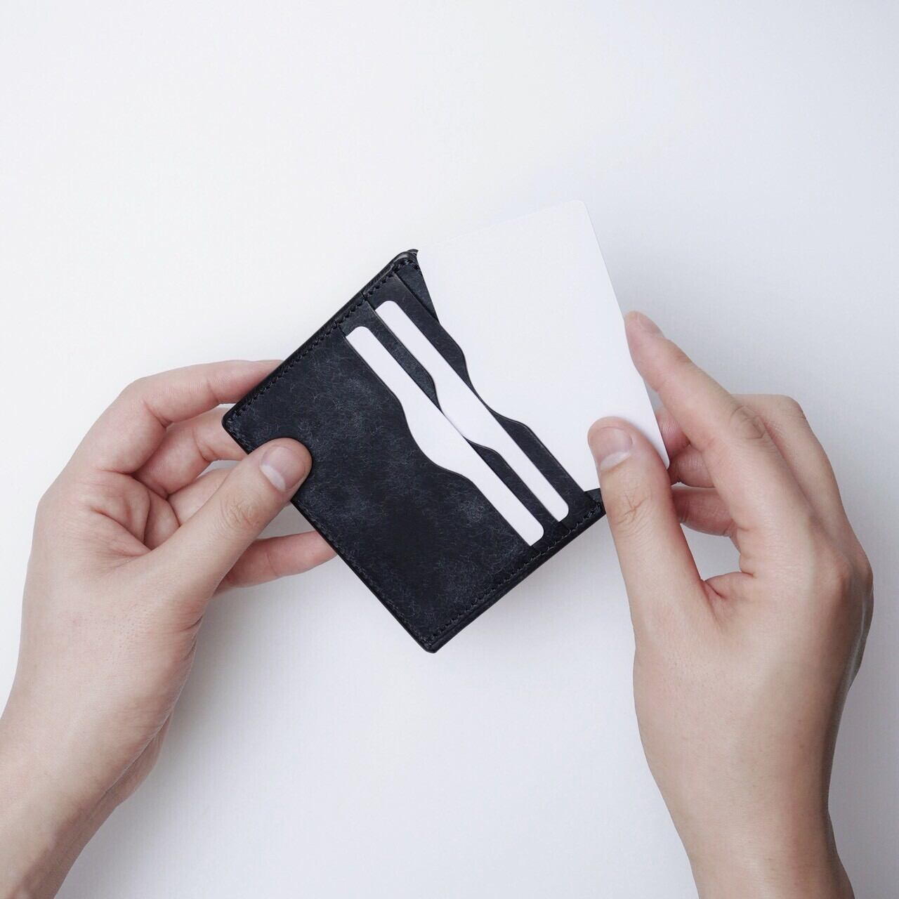 最小、最薄のサイズに必要十分な収納力と使いやすさを備えた池之端銀革店の財布にIruからデザインを別注。